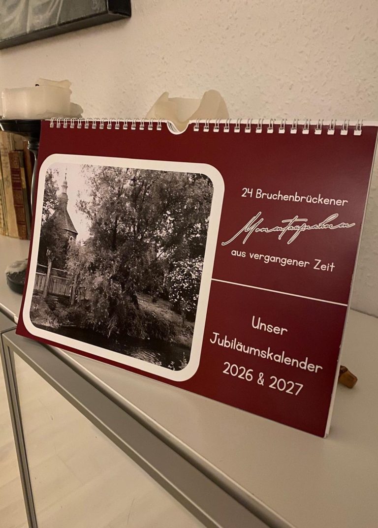 Unser Jubiläumskalender für die Jahre 2026 & 2027 zeigt 24 einzigartige Momentaufnahmen aus Bruchenbrücken, liebevoll zur Verfügung gestellt von Bruchenbrückener Familien. Jede Seite erzählt ein Stück Dorfgeschichte und macht die Vergangenheit lebendig. Zwei Jahre voller Heimatgefühl und Gemeinschaft – ein Kalender, der verbindet.