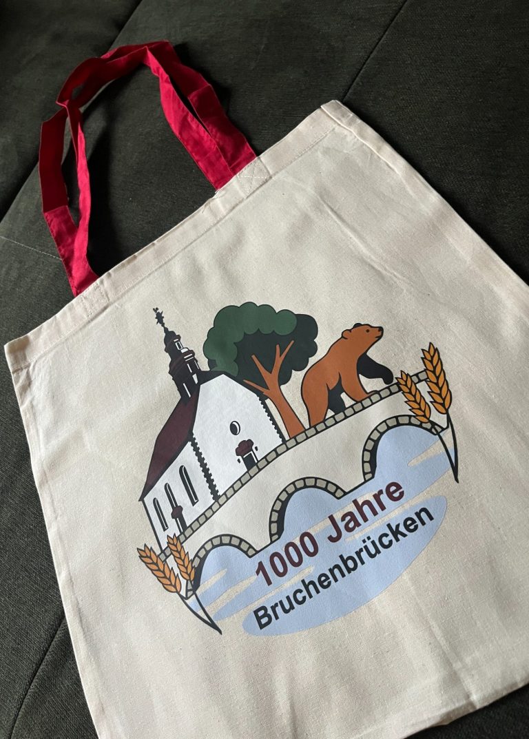 Unser praktischer Stoffbeutel mit dem Logo des Dorfjubiläums ist der ideale Begleiter für Einkäufe und den Transport aller Dinge des Alltags. Robust, nachhaltig und zugleich ein sichtbares Zeichen unserer Gemeinschaft.