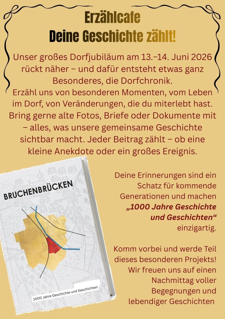 Viele engagierte Helferinnen und Helfer sammeln bereits Erinnerungen und Materialien. Doch damit unsere Chronik wirklich lebendig wird, brauchen wir Deine Erlebnisse, Deine Fotos und Deine Geschichten!