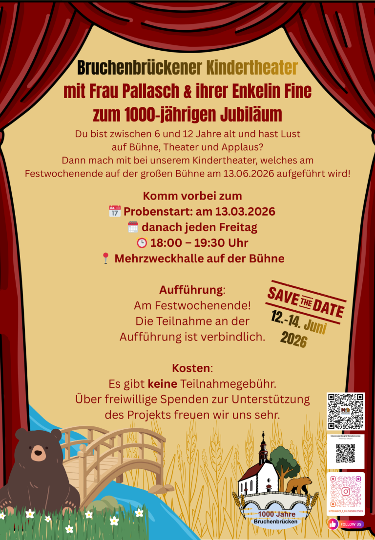 Am 13.06.2026 heißt es: Bühne frei für das Bruchenbrückener Kindertheater!